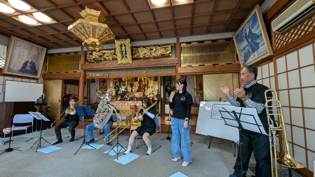 12月15日(日)はいつもの練習の前に、当楽団のトロンボーンメンバー&チューバメンバーによる「アンサンブルコンサート」を、広島市東区にある「妙覚寺」さんで開催しました!