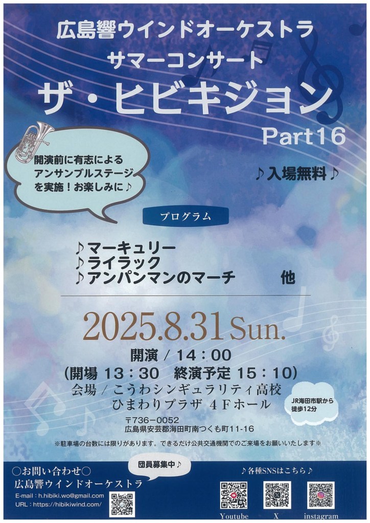 あくまで一部ですので、当日はどのようなアンサンブル集団が現れるかは聞きに来てくれた人のみが知ることができる特典です。是非、会場に足を運んでもらいたいです。