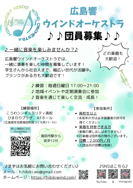 当団では随時、共に演奏してくれる仲間を募集しています。