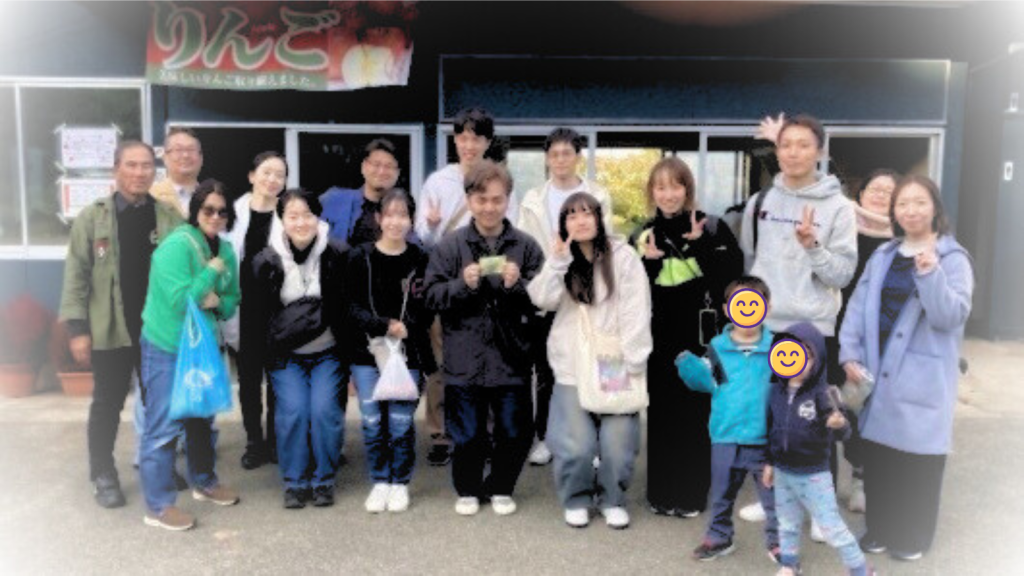 「せっかく世羅に行くなら思いっきり楽しもう!」というメンバーの声に応えて、近くの【世羅向井農園】さんへりんご狩りに行くことに。