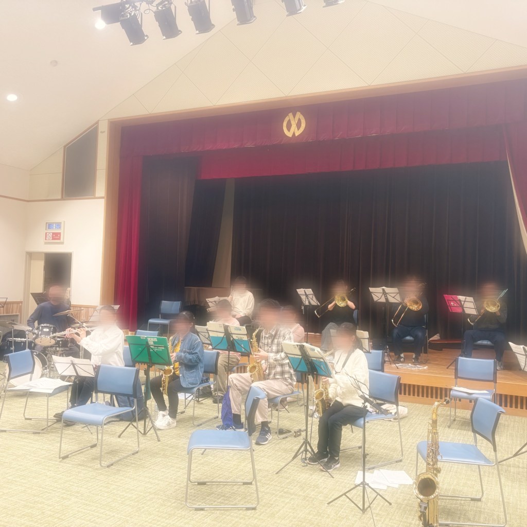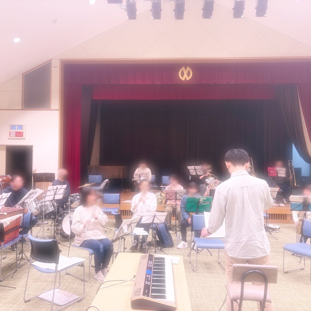 Fl 3, Ob 1, Sax 4, Hr 1, Euph 3, Tp 1, Tb3, Tu 1, Perc 4(見学者1含む)